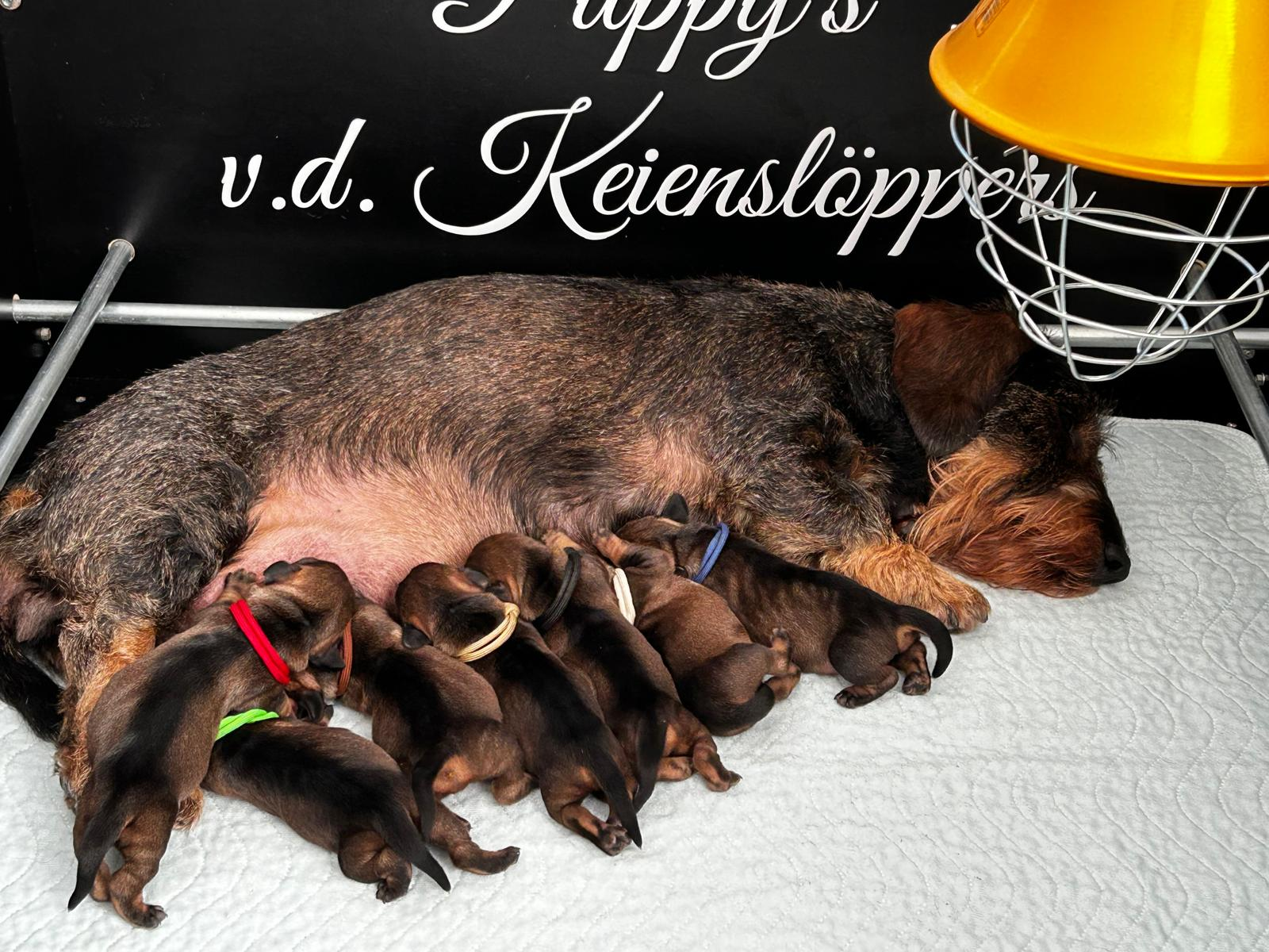 v.d. Keienslöppers is lid van de Nederlandse Teckel Club en we fokken volgens de door hen opgestelde kynologische richtlijnen. Dit betekent dat onze honden ondermeer een oog-test ondergaan en worden gekeurd op fokgeschiktheid. Verder is het DNA van Fleur getest met behulp van een EmBark test. Tot slot selecteren wij de dekreu om de positieve en uiterlijke kenmerken van het teckelras te versterken en ongewenste afwijkingen te voorkomen.